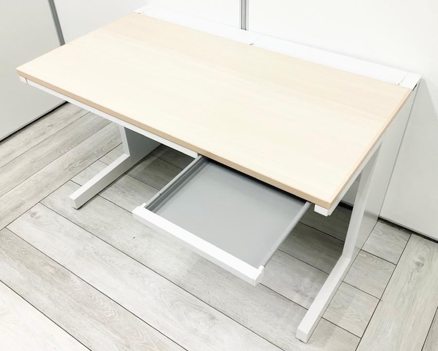 【在庫入替セール】【3台限定!】ウチダ製 スカエナシリーズ Kタイプ ナチュラル天板 W1200サイズ 平机 配線カバー 引出し付 おしゃれ
