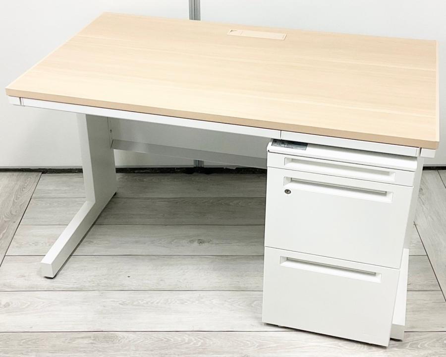 【在庫入替セール】【3台限定!】ウチダ製 スカエナシリーズ Kタイプ ナチュラル天板 W1200サイズ 平机 配線カバー 引出し付 おしゃれ