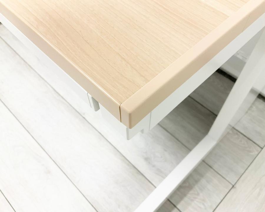 - 机の角がシャープなので、隣り合うデスクがフラットにつながります。すっきりとしたデザインです。