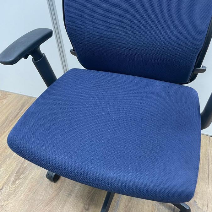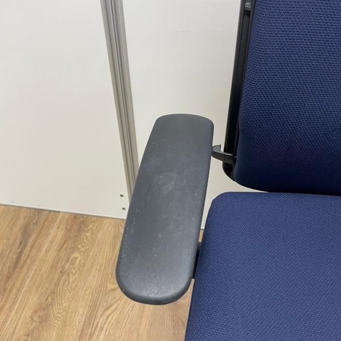 【濃いめのブルーカラーの人気チェア!】オカムラ エスクード 肘付 ハイバック ネイビーブルー グレーシェル 人気 中古 福岡 九州最大級《オフィスバスターズ福岡博多店は、福岡を拠点として、日本全国へ中古オフィス用品・オフィス家具を提供しております》