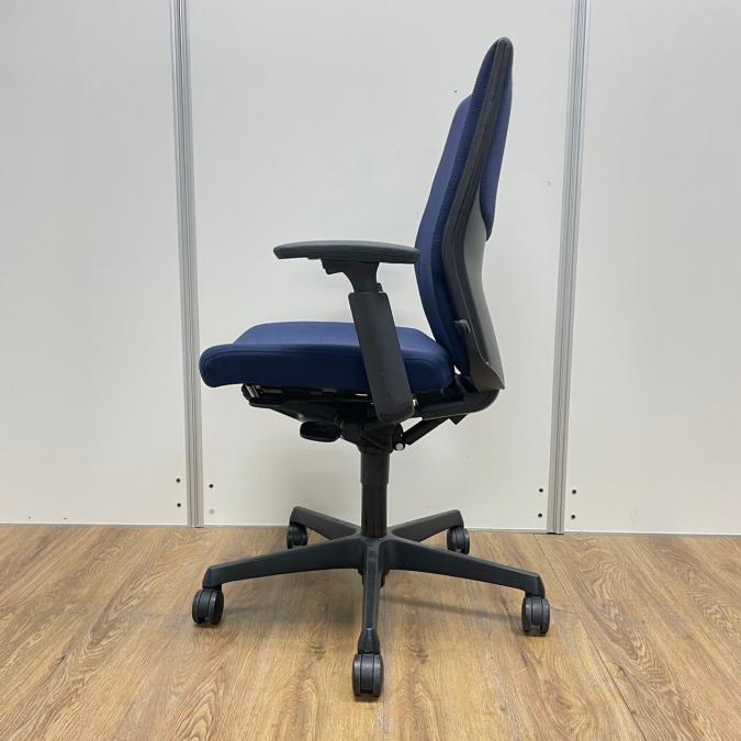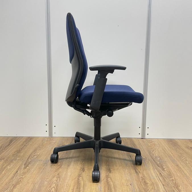 【オフィスの定番チェア!起業や入替に!】■okamura(オカムラ)製 ESCUDO/エスクードチェア 肘付ハイバック ■ダークブルー ■固定肘 ■ランバー付 【長時間のデスクワークもランバーが快適にサポート!】【入替セールにつき20%OFF!】