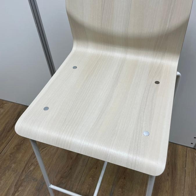 【商品入替のため、残り2脚限り】オカムラ製 sweep(スイープ)シリーズ 木目ナチュラル シェルタイプ カフェスペースやリフレッシュエリアを演出! ハイテーブルやカウンターに合わせてのご利用にオススメ! ハイチェア!!- 京都東寺店