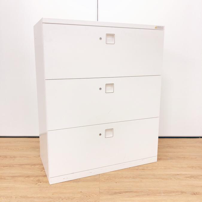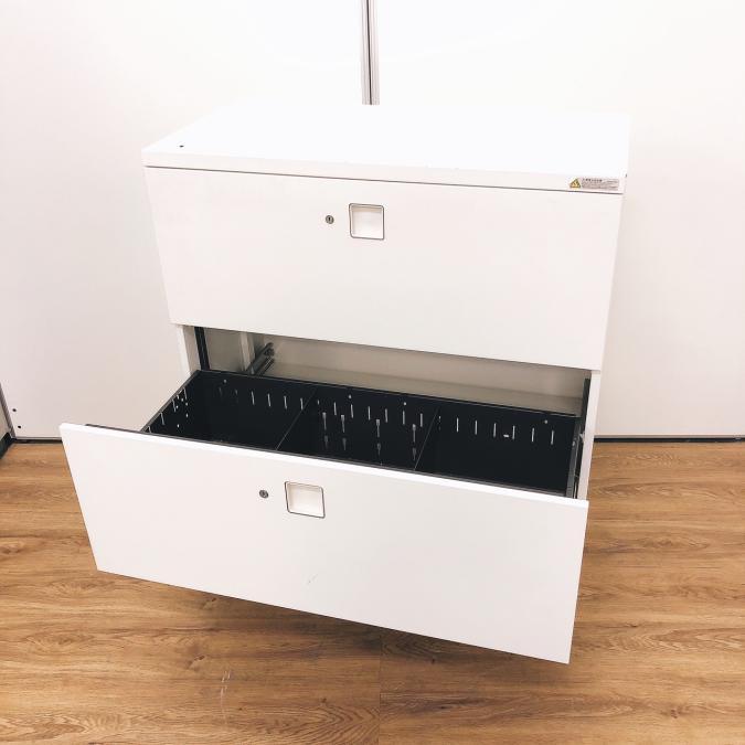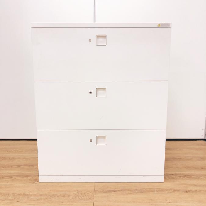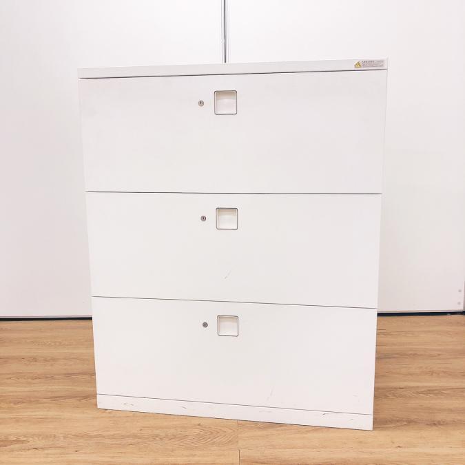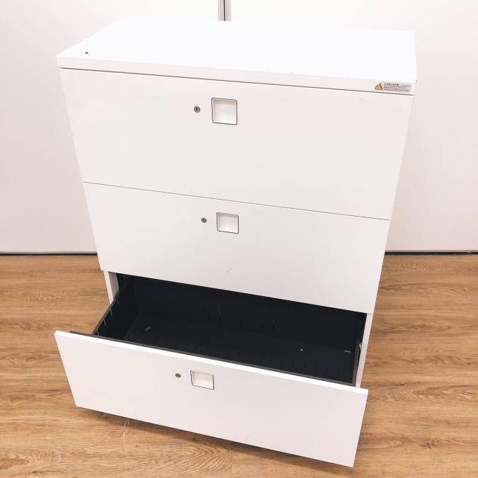 【1台限定!】【すべての引き出しにシリンダー錠付き】オカムラ レクトライン ホワイト 3段ラテラル書庫 ホワイト 収納 書棚 書庫 個別ロック 【中古】【オフィス家具】オフィスバスターズ堺店- 大阪・堺店