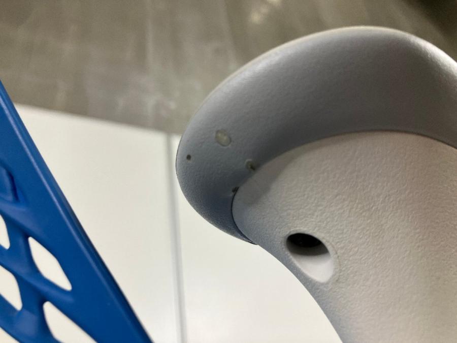 右アームの上下昇降機構のカバーが欠損しておりますが、機能は問題なく作動致します。(写真3枚目参照)