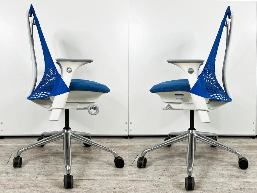 HermanMiller/ハーマンミラー セイルチェア 肘付 前傾機能付き ベリーブルー ポリッシュベース- デザイナーズ家具センター