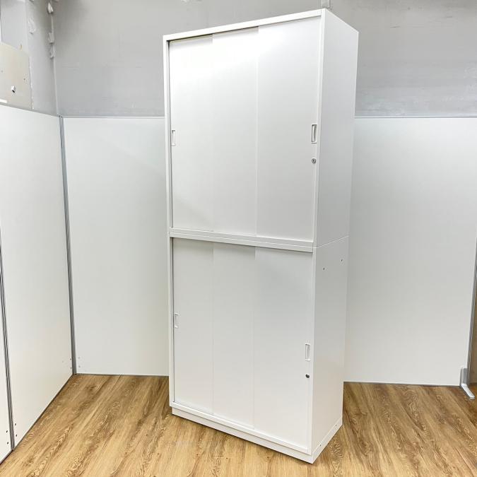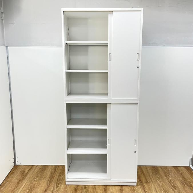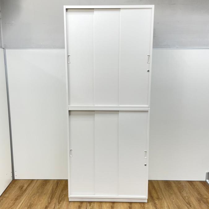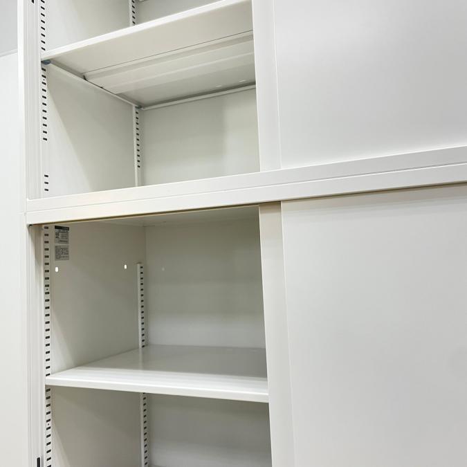 【スライド引き戸だから開閉スペースに困らない!】イトーキ製 シンラインシリーズ ホワイトカラー 上下引き違い書庫セット!!- 新大阪店