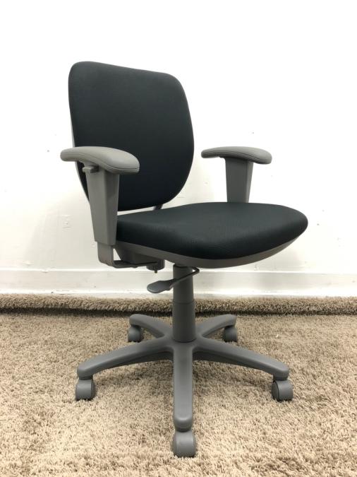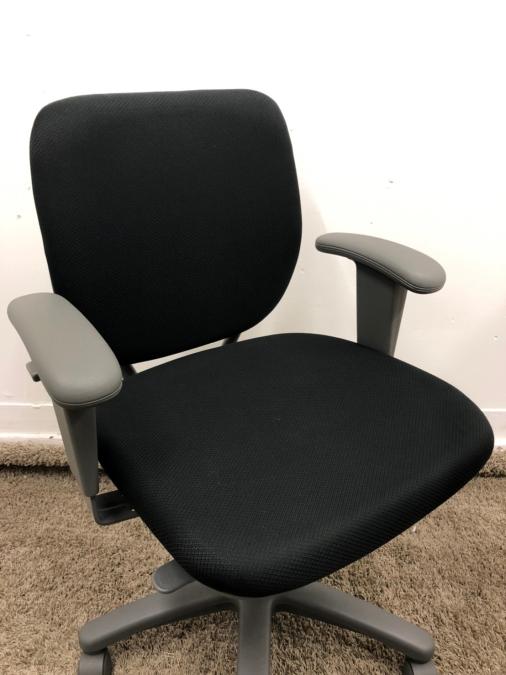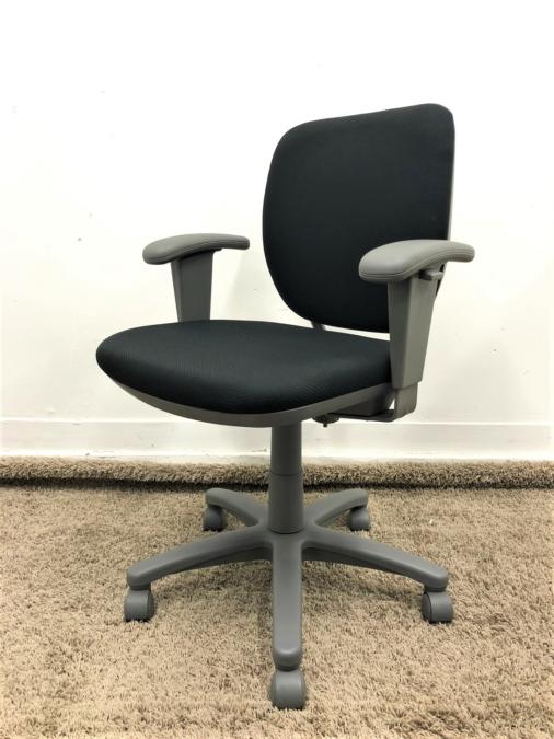 【厚めのクッションが心地いい!】■オカムラ製 オフィスチェア 肘付 ブラック 定番- 在庫数