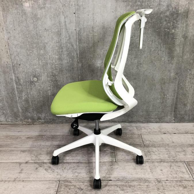 【三次元曲面が身体にフィット!】■オカムラ製 シルフィーチェア ライムグリーン ハンガー付 ■まるで手を添えて包み込まれるような優しい座り心地!★- 川崎店