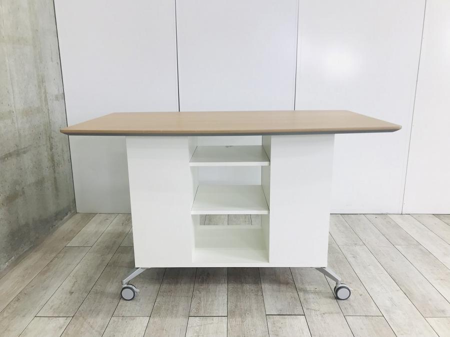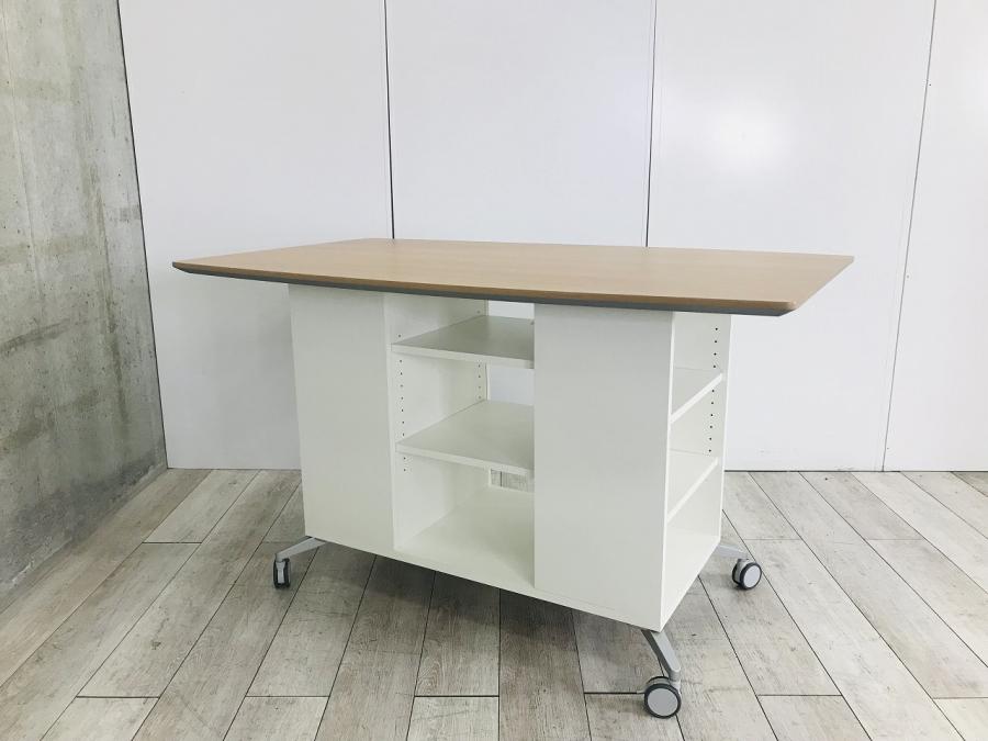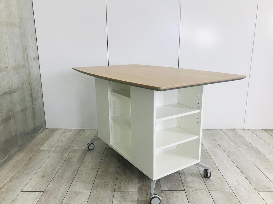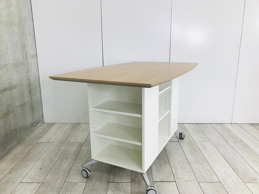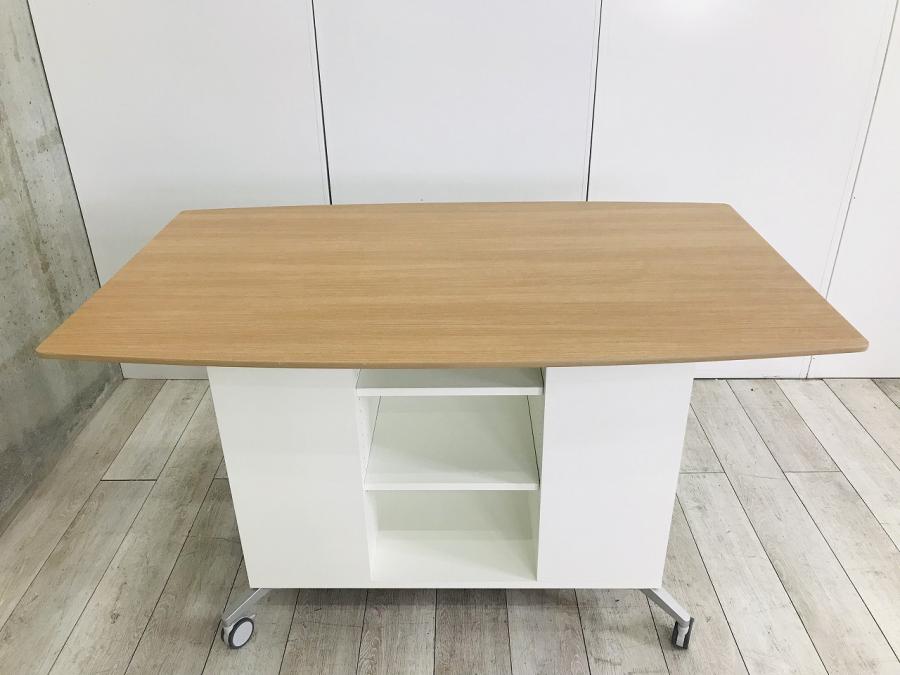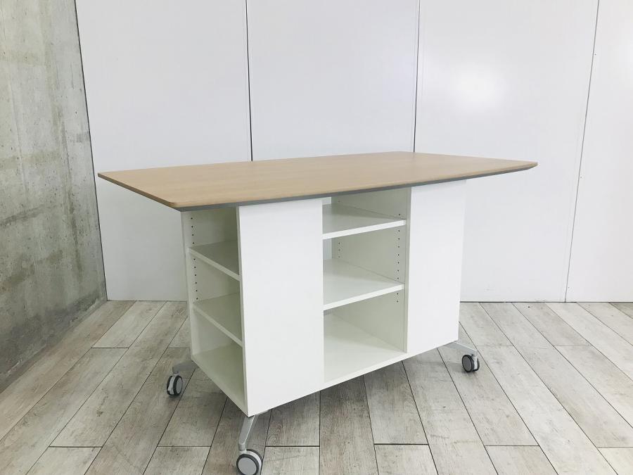 【オフィスの共同スペースに置いて作業効率UP!】【キャスター付きで使い勝手がいい!】■オカムラ(okamura)製 アルトコーボウ (Alt KOBO) アトリエテーブルA 角テーブル ■舟形天板 ■木目ナチュラル × 本体ホワイト【ABW商材】【関東倉庫在庫品】【弊社使用欄:A00974170】- 全店共通商品