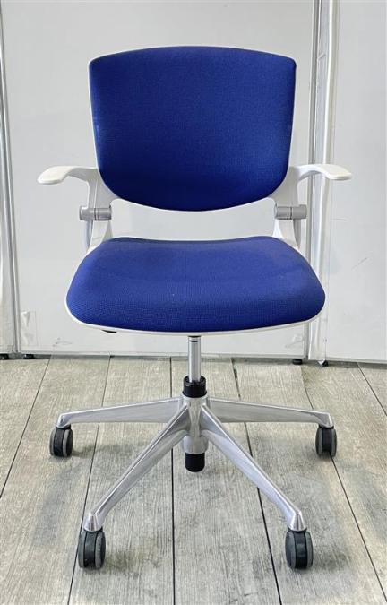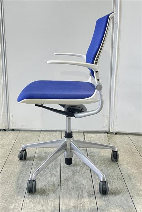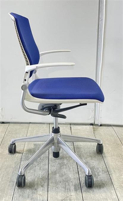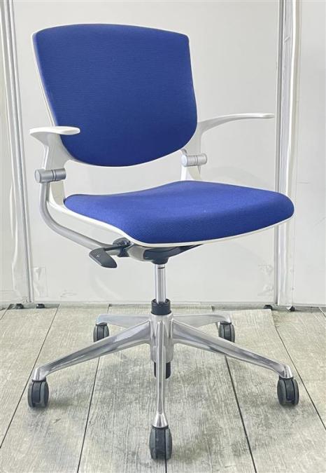 【在庫入替セール】【6脚そろいます!】オカムラ製 グラータシリーズ■肘付き ワンランク上のミーティングチェア■ホワイト・ブルー- 東大阪店