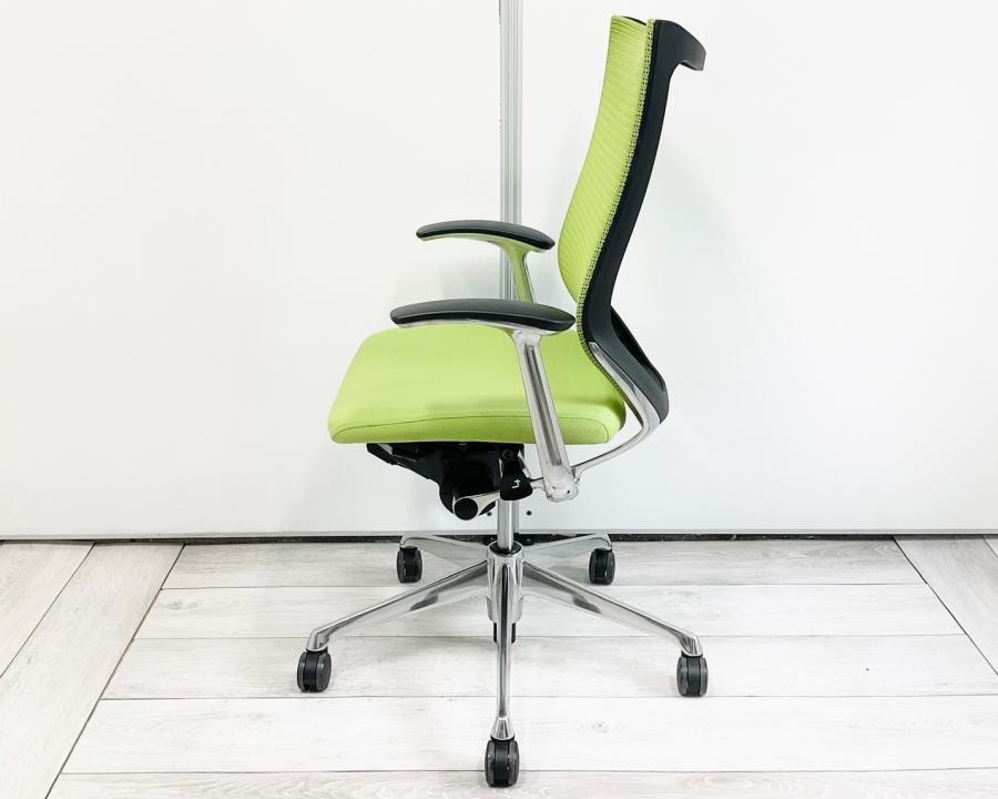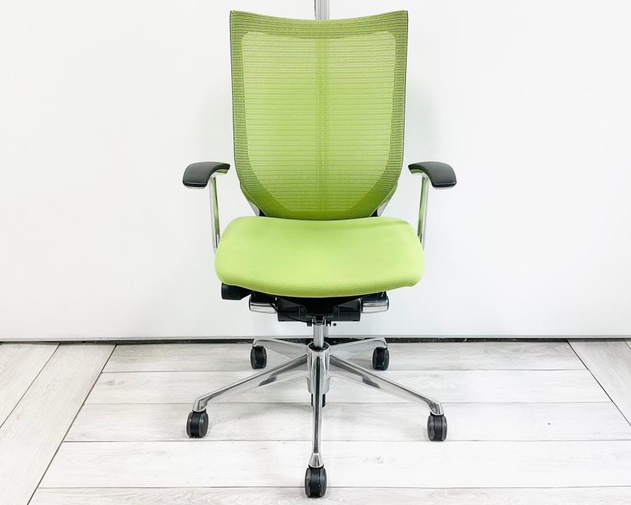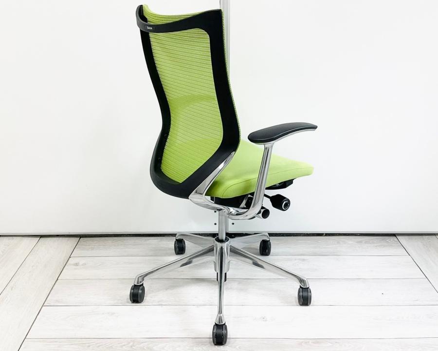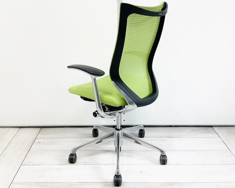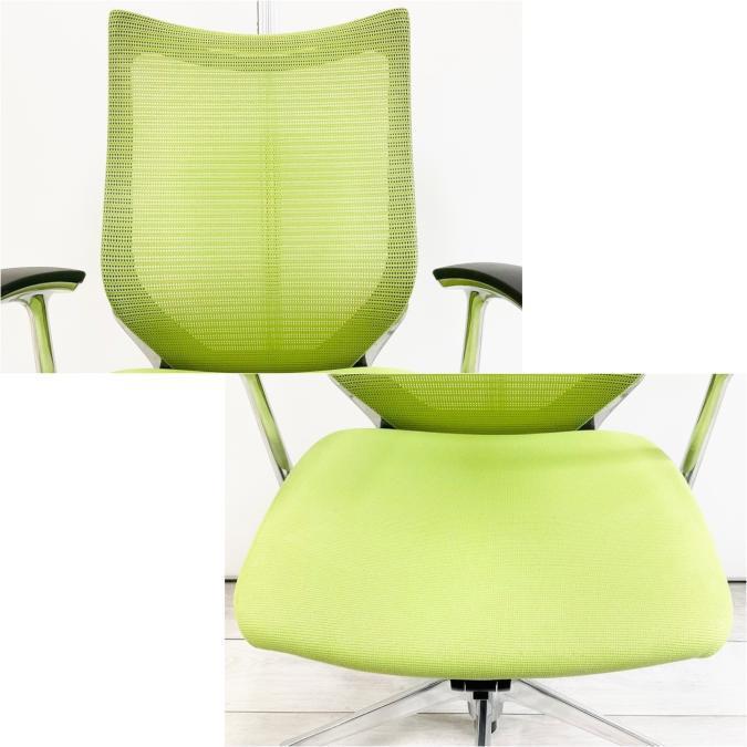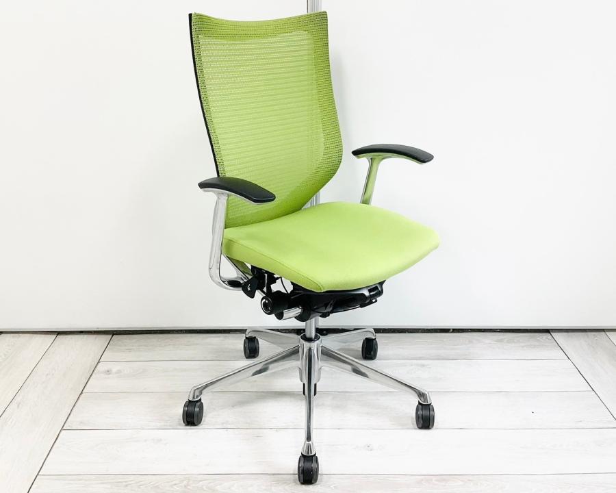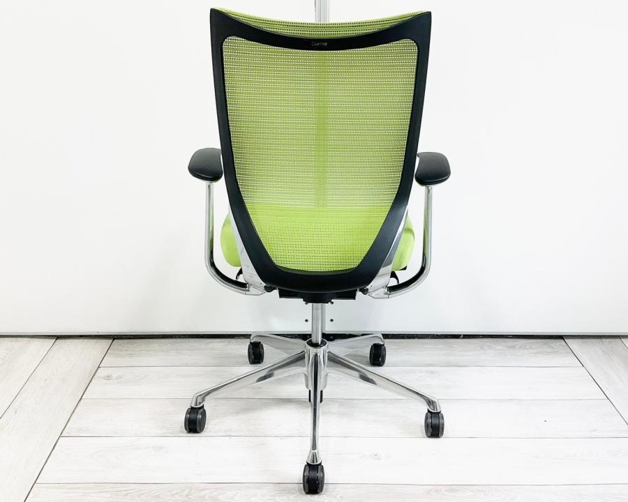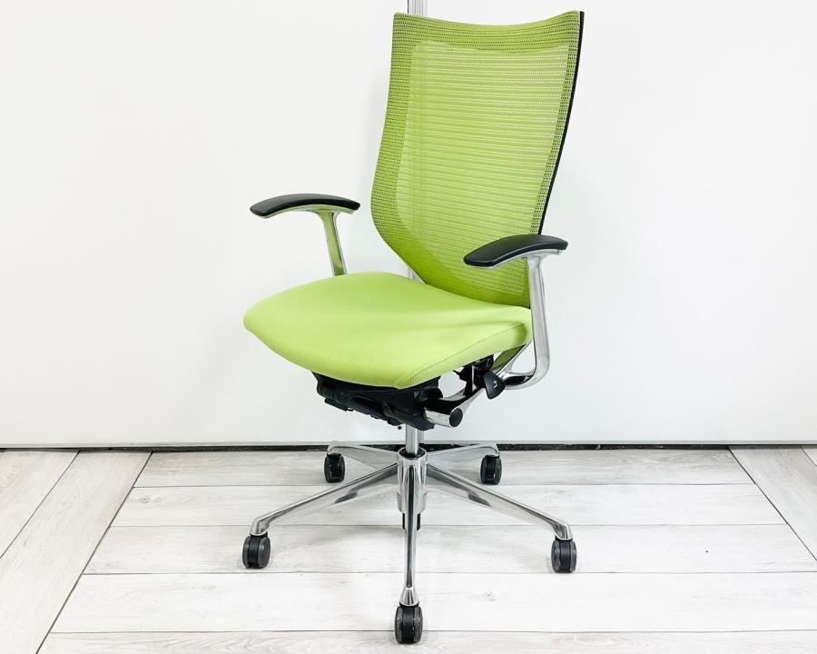 【腰に優しい!目にも優しいカラーで一脚二得!!】◆オカムラ/バロン/グリーン ◆ハイバック/固定肘/ポリッシュ 【弊社使用欄:A00972346】サーキュラーバリューCO2削減量の算出について