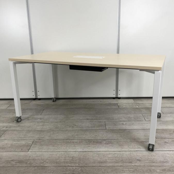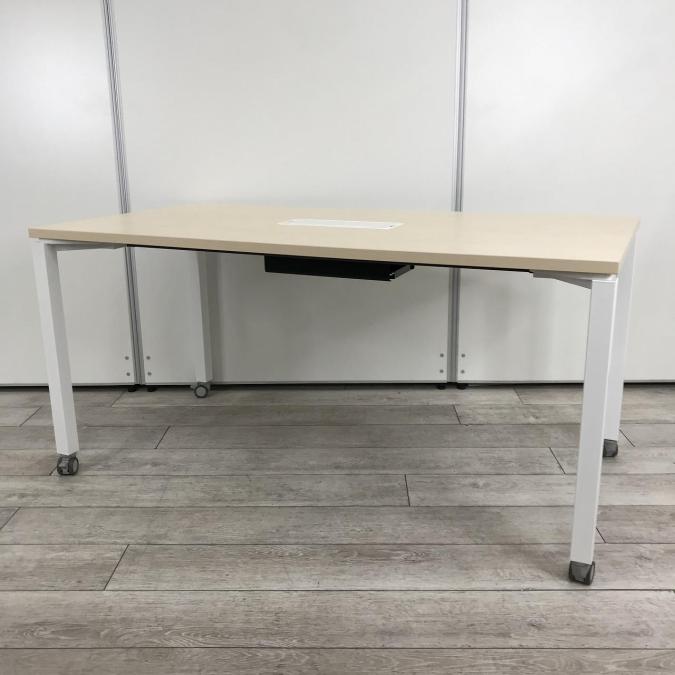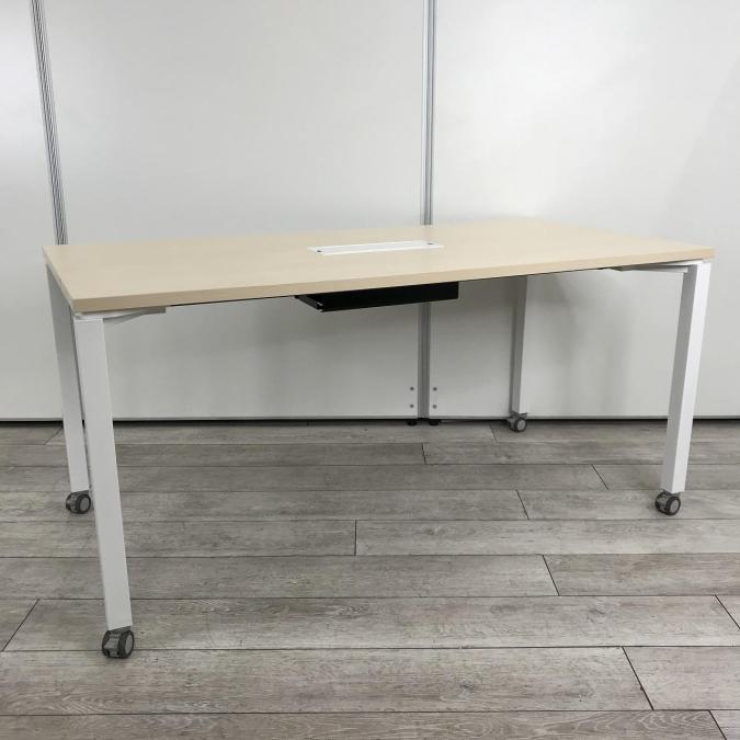 【使い方は自由自在!フレキシブルなレイアウト変更にも対応!】■コクヨ(KOKUYO) WORKFIT(ワークフィット)シリーズ ■W1500mm キャスター付 配線孔あり ■天板:木目ナチュラル【OAテーブル・ミーテイングテーブル】- 足立・葛飾店