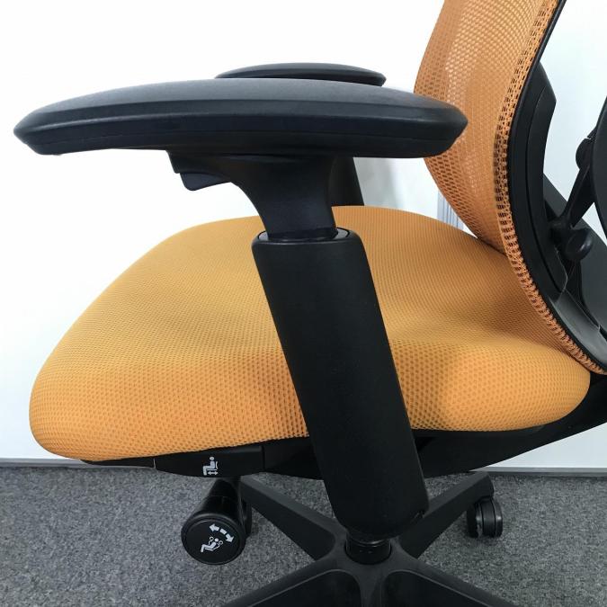 【在庫入替えセール!】【三次元曲面が身体にフィット・まるで手を添えて包み込まれるような優しい座り心地!】■オカムラ製 シルフィーチェア ハイバック肘付き ■背面メッシュ 可動肘 ■オレンジ (ブラックフレーム)- 足立・葛飾店
