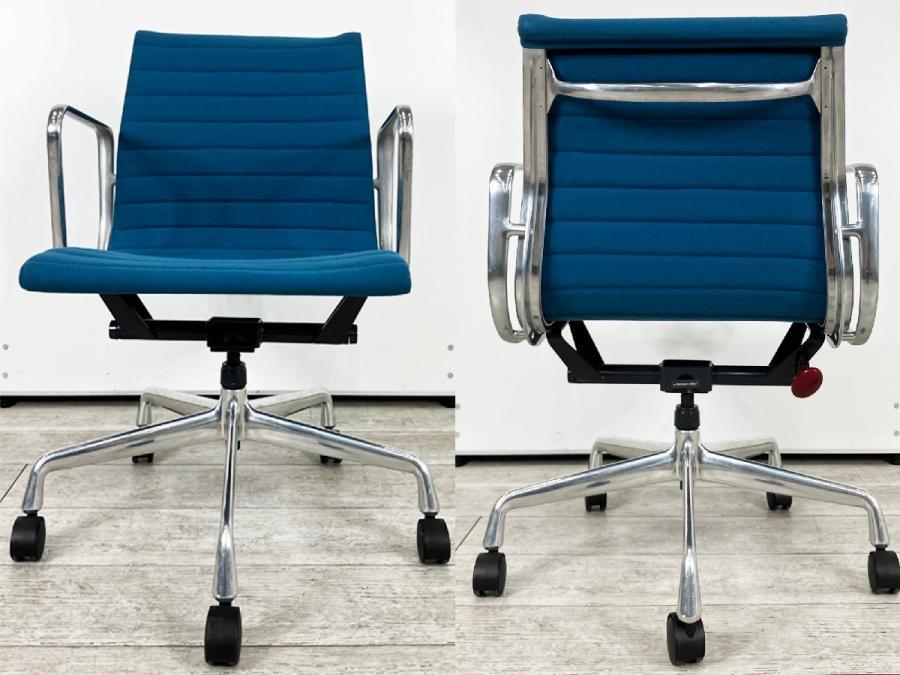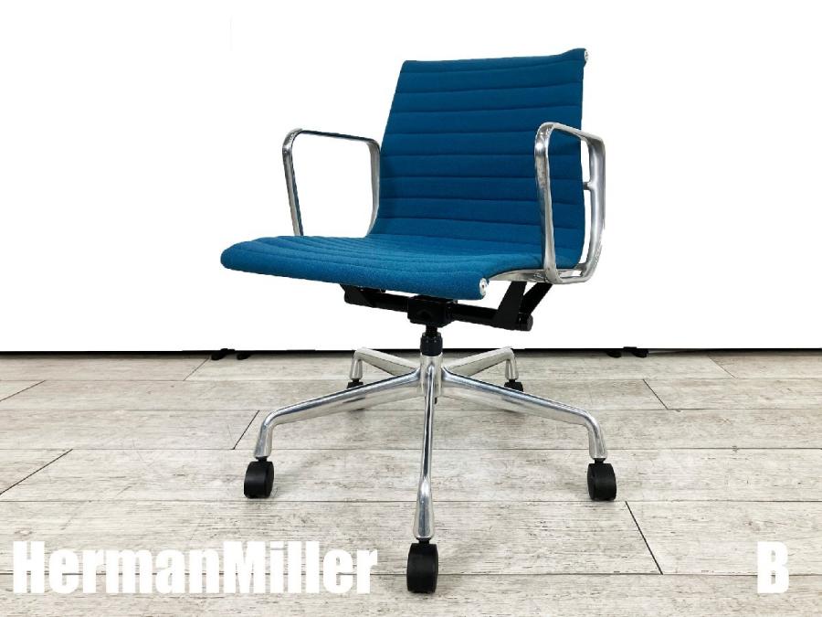 B)HermanMiller/ハーマンミラー イームズ アルミナムチェア ローバック ブルー系 ファブリック- デザイナーズ家具センター