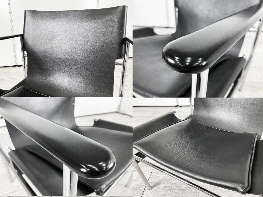 ミッドセンチュリー期の著名なデザイナー作品を販売している『Knoll(ノール)』社からチャールズ・ポロックがデザインした1964年から1979年に製造され「スリングチェア」または「657」と呼ばれたスチールとレザーによる構成のアームチェアです。 2015年に「ポロックアームチェア」として復刻されておりますが、こちらは希少なヴィンテージ品のモデルとなります。異素材のコンビネーションが美しい上品なデザインです。