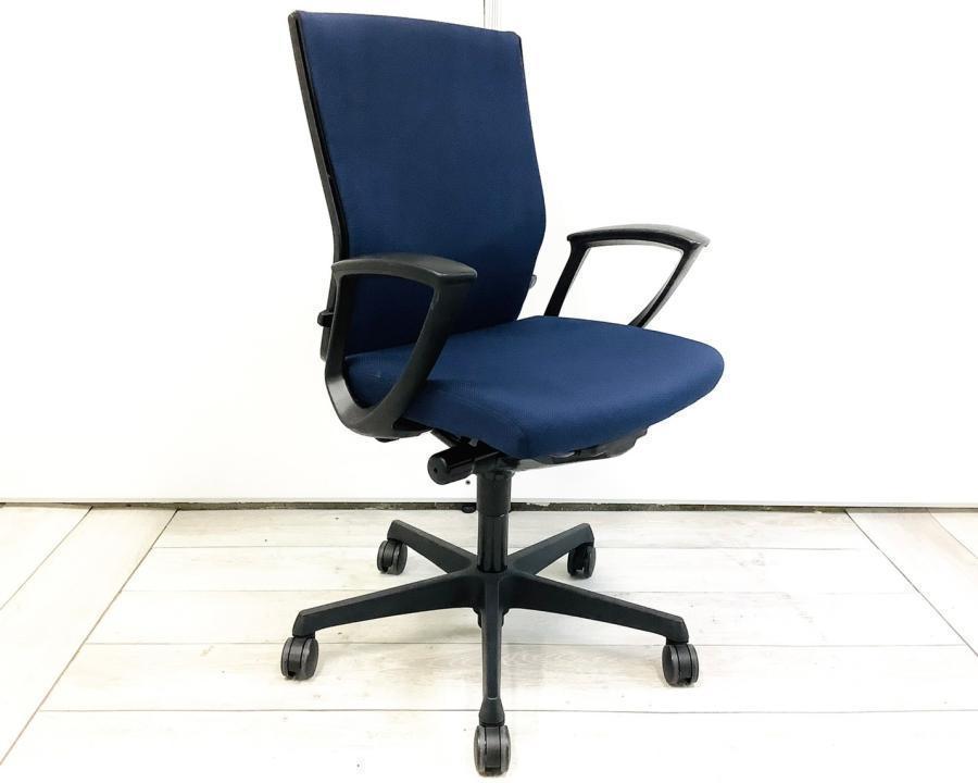 【濃いめのブルーカラーの人気チェア!】オカムラ エスクード 肘付 ハイバック ネイビーブルー グレーシェル 人気 中古 福岡 九州最大級《オフィスバスターズ福岡博多店は、福岡を拠点として、日本全国へ中古オフィス用品・オフィス家具を提供しております》