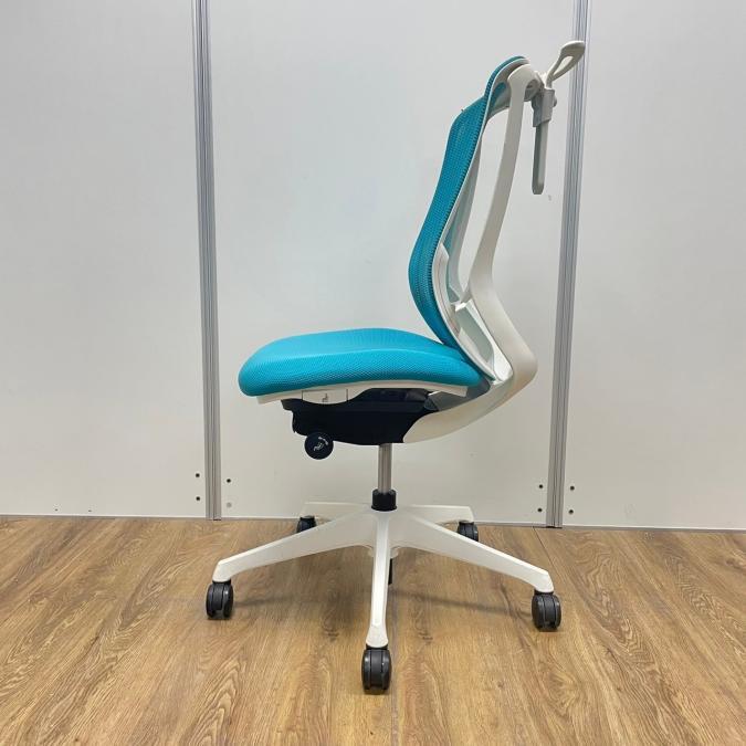 【西】~快適とデザインを両立~【オカムラ】【シルフィー】【ライトブルー】【前傾姿勢】【フレーム・脚ホワイト】【チェア】【椅子】【イス】【事務椅子】【デスク】【机】【書庫】【書棚】【棚】【ラック】【収納】【格安】【安い】【メーカー】【レイアウト変更】【模様替え】【福岡オフィス家具】【福岡中古家具】【中古事務什器】【中古チェア】【中古椅子】