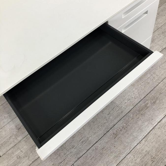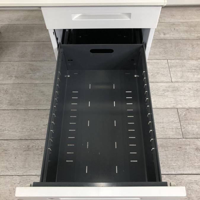デスクサイドには3段の収納付きで、収納面もばっちりです。