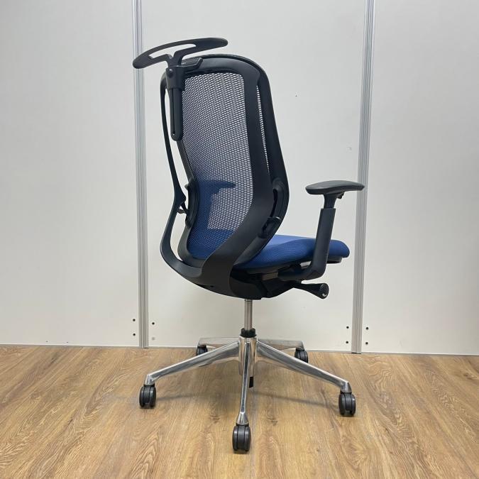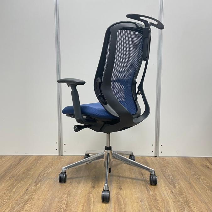 【新品ヘッドレスト交換済み】オカムラ/シルフィー/ブルー/可動肘