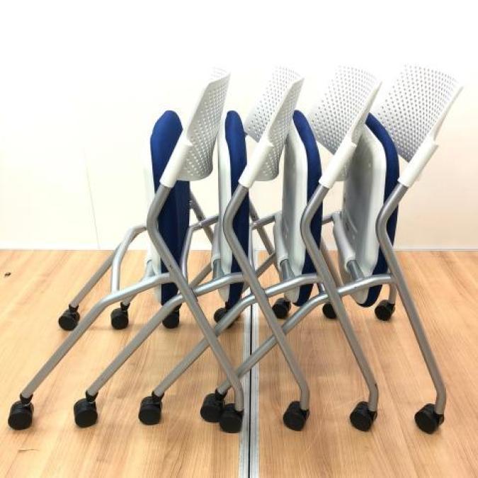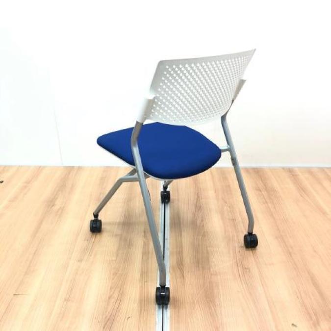 【6脚限定】【在庫入替品】【スタイリッシュなネスティングチェア!シンプルデザインで様々なミーティングシーンにぴったりフィット!】■ウチダ(UCHIDA)製 FM265 ネスティングチェア ■座面ブルー×ホワイト背面 ■キャスター付 ■背面樹脂メッシュ オフィスバスターズ 梅田本店【T9】