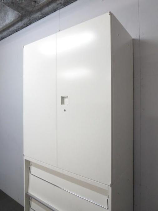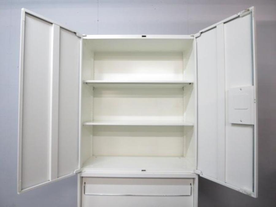 - 多数不具合あり引出の開閉不可、施錠不可、棚板無しといったその書庫の本来の効用を果たすための機能以外の多数が使用不可(例、扉、引出の開閉がしづらいなどがある。 )