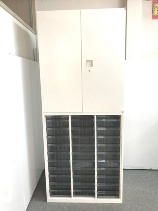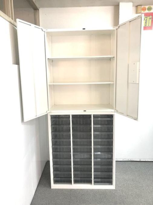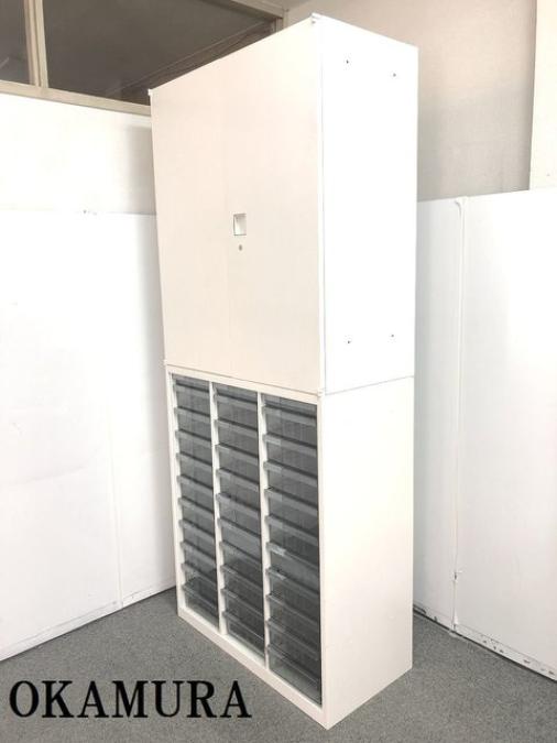 【店長オススメ!】1台限定! ◆オカムラ レクトライン 上下書庫セット / クリスタルトレー / 書類整理 / 小物入れ / キャビネット / 収納庫 / 観音開き / 引き出しタイプ- 福岡博多店