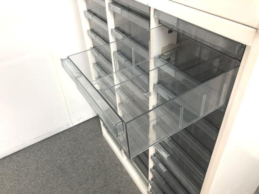 - 一部不具合ありそ引出の開閉不可、施錠不可、棚板無しといったの書庫の本来の効用を果たすための機能以外の一部が使用不可(例、扉、引出の開閉がしづらいなどがある。 )