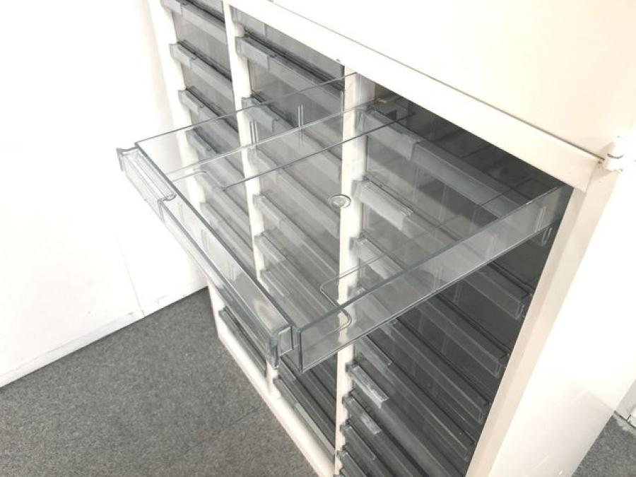 - 多数不具合あり引出の開閉不可、施錠不可、棚板無しといったその書庫の本来の効用を果たすための機能以外の多数が使用不可(例、扉、引出の開閉がしづらいなどがある。 )