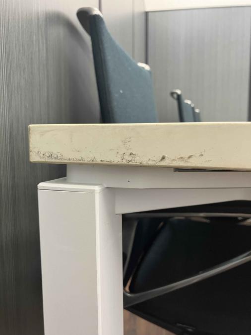 - 壊れている天板歪み、アジャスター無し、キャスター使用不可のようにそのテーブルの本来の効用を果たすための機能に不具合がある。