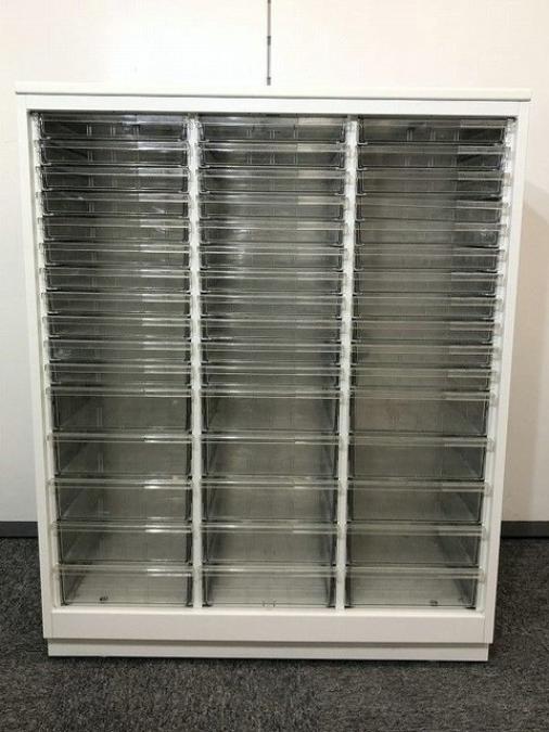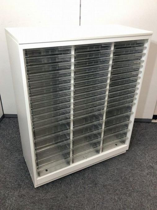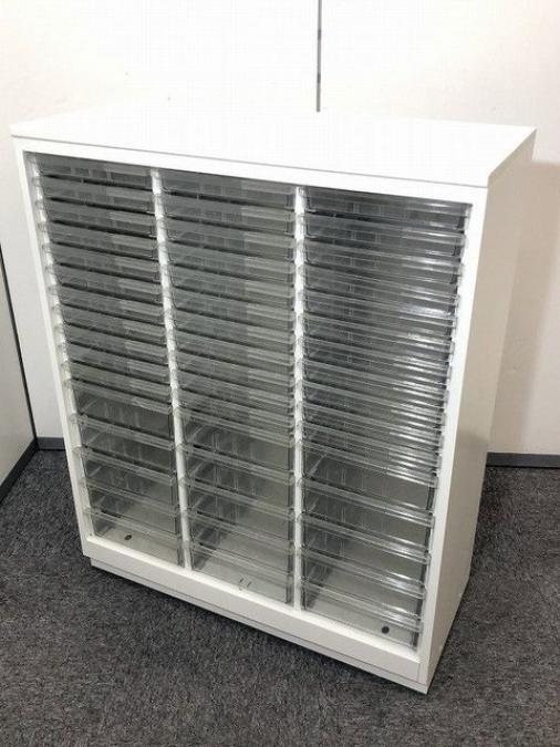 【書類・備品整理の必需品!】【珍しいクリトレが入荷!3列×浅型11段+深型5段】■イトーキ(ITOKI)製 シンラインシリーズ クリスタルトレー ローキャビネット ■3列×浅型11段+深型5段 ■天板・ベース付 ■色:ホワイト