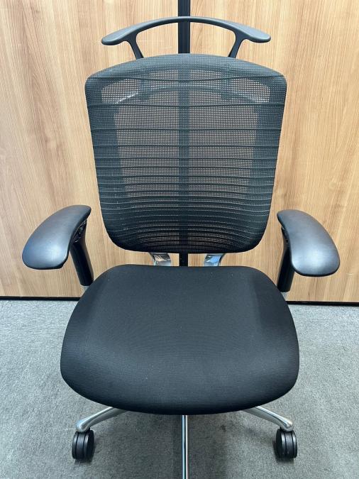 【最上位機種にふさわしい上質な座り心地!ハイグレードメッシュチェア!】■オカムラ(okamura)製 コンテッサ(Contessa) 肘付ハイバック ■ブラック ■可動肘 ■背面メッシュ