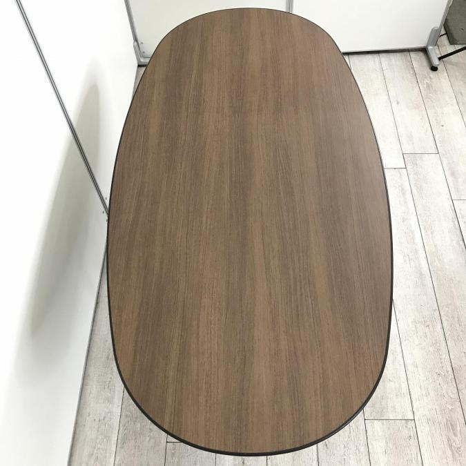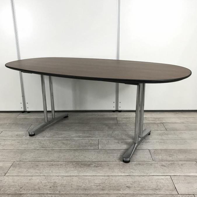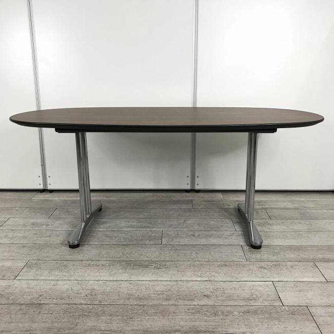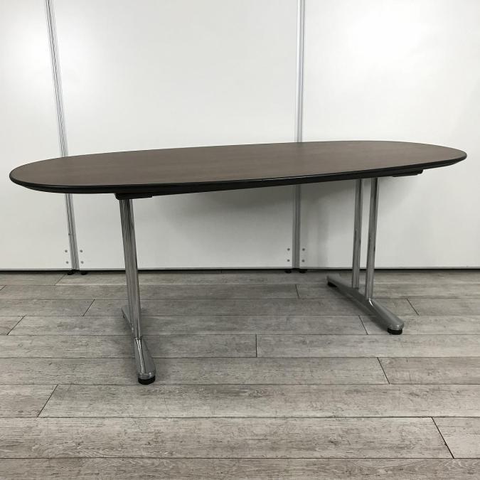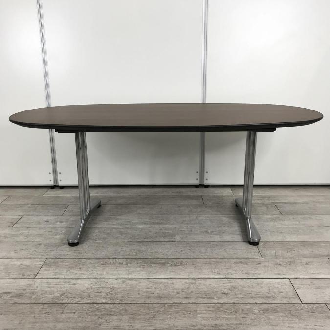 【落ち着いたブラウンカラー天板!6~8名様でのご利用に最適ミーティングテーブル!】■オカムラ(okamura)製 インターレイス ミーティングテーブル ■木目ダーク ■幅1800㎜ ■楕円型- 池袋店