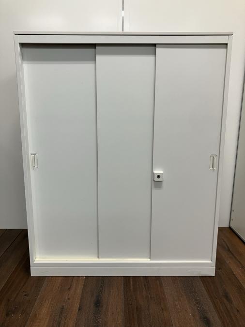 オカムラ製 人気レクトラインシリーズ ホワイト シリンダー W800xD450XH1050 3枚引戸 ※ベースなし 3枚引き違い書庫!!