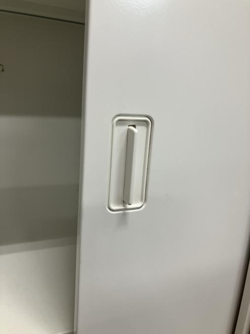 2枚引き戸書庫 オカムラ レクトライン 鍵付き シリンダー錠 ホワイト 天板無し スライド式の扉のため導線を邪魔しません