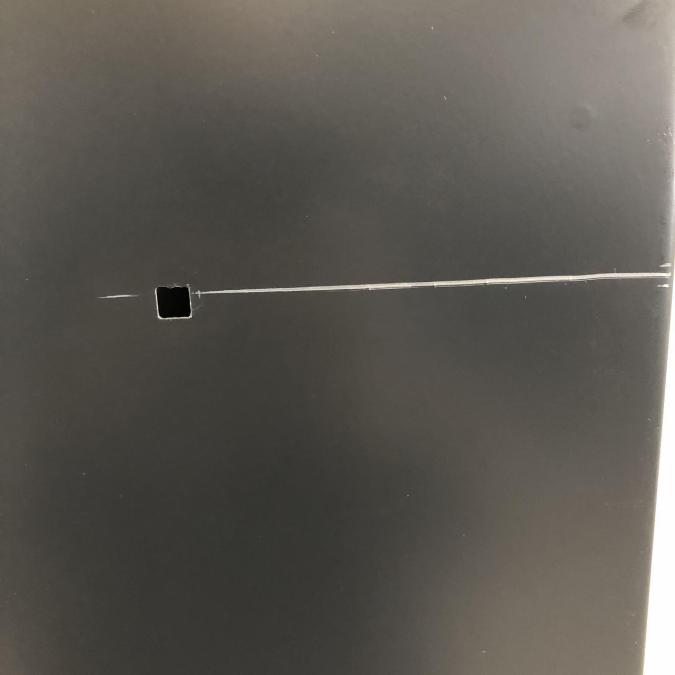 - 目立つ箇所複数あり深い傷・凹みが商品全体にある。(例、天板、正面、背部、サイド部分にある。)
