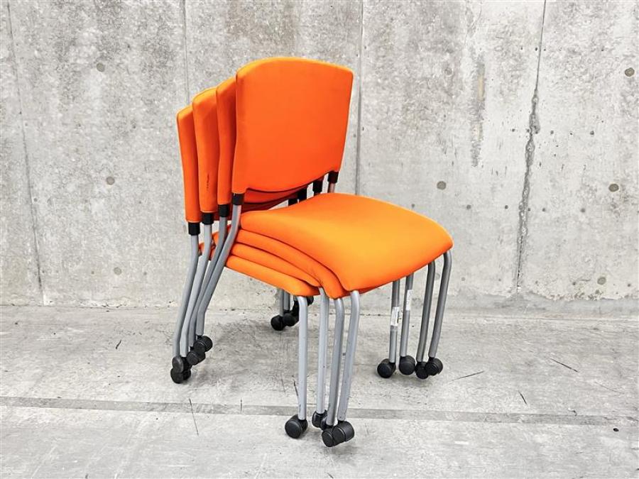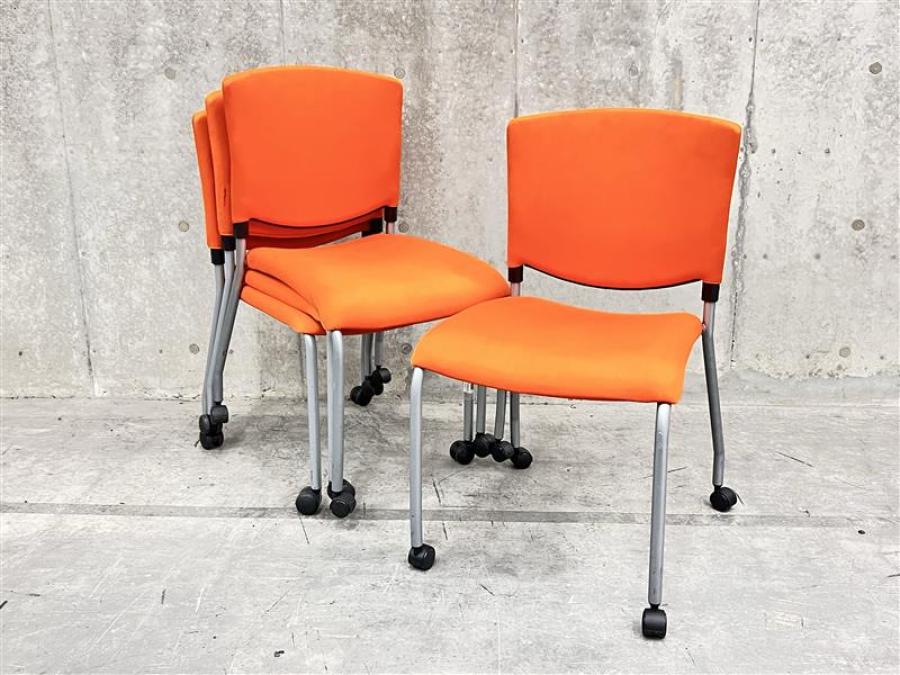 4脚1セット!明るい色味、オレンジのミーティングチェア入荷!- 在庫数
