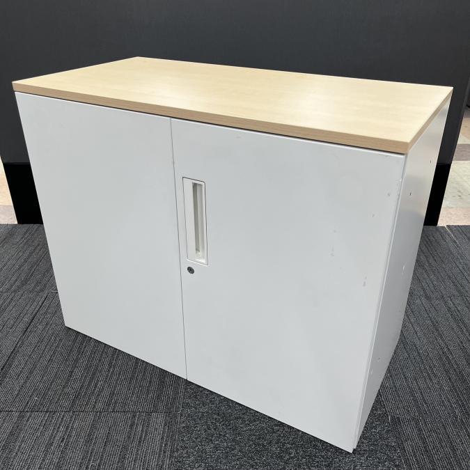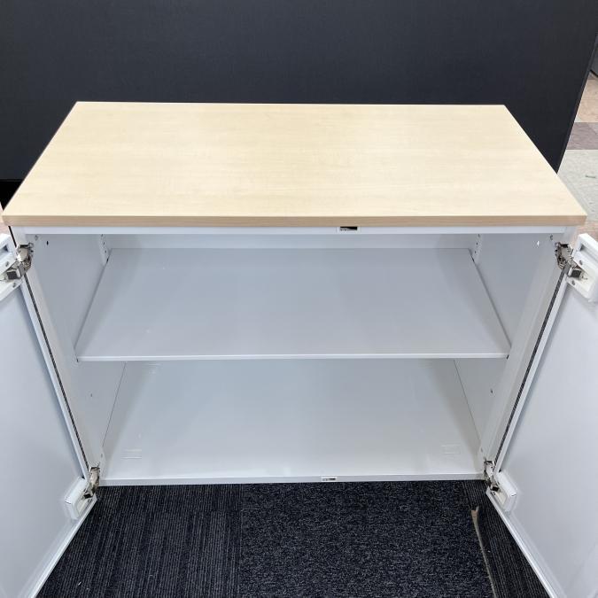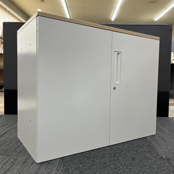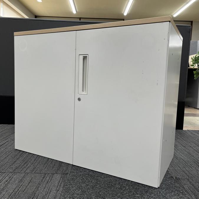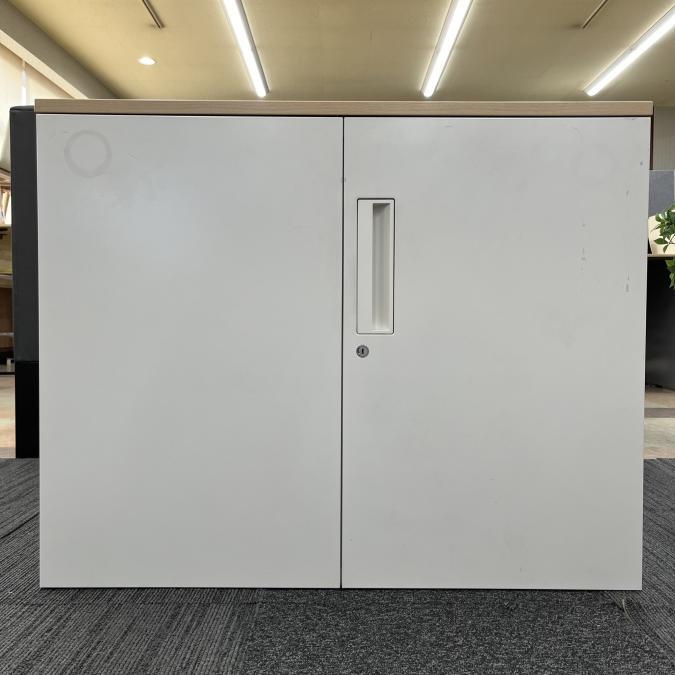 【収納物がひとめで分かる両開き戸タイプ!】■コクヨ(KOKUYO)製 エディア(EDIA)シリーズ 両開き書庫 ローキャビネット H1130㎜ ■天板・ベース付 ■ホワイト ■シリンダー錠【IB】