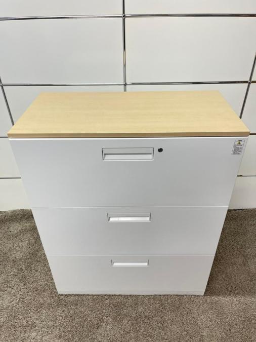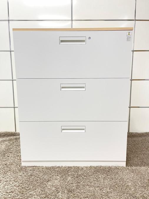 【収納力抜群のローキャビネット】コクヨ エディア 3段ラテラル キャビネット ホワイト シリンダー錠 天板月【3段引き出しの定番商品!】- 足立・葛飾店