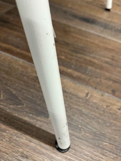 - かなり強い濃い黄ばみ・変色が商品全体にある。(例、座面・背もたれ、脚部等にある。)