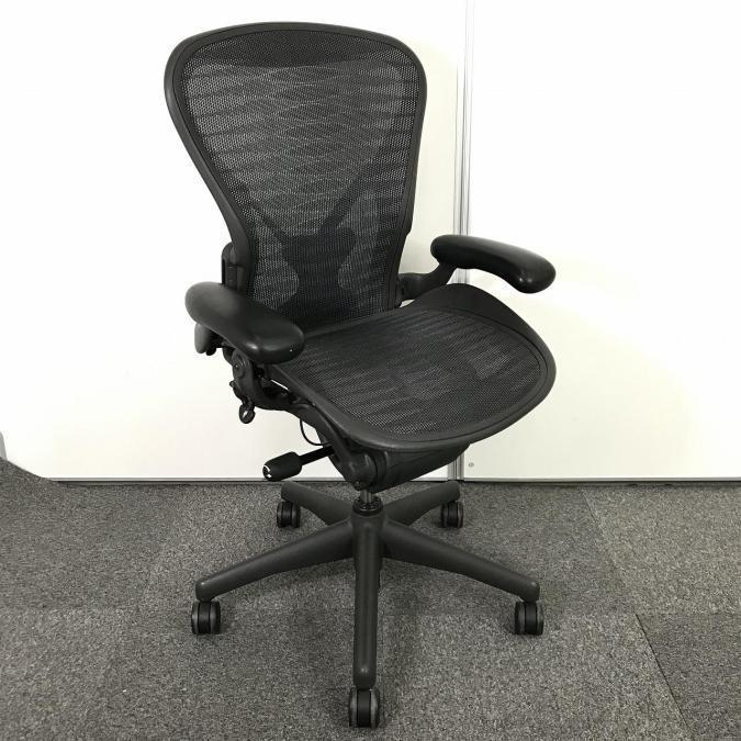 【スタイリッシュなデザインに快適な座り心地!】■ハーマンミラー アーロンチェア Bサイズ 固定肘 ランバーサポート無 ※キズあり・劣化ありのためお安く!【A01029474】