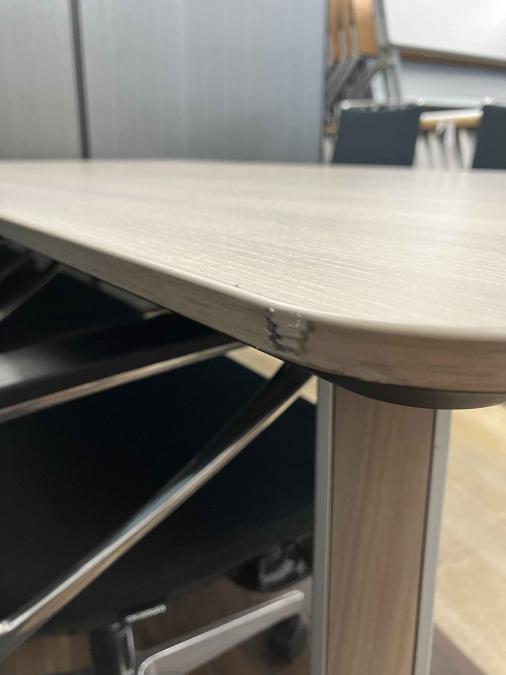 - 壊れている天板歪み、アジャスター無し、キャスター使用不可のようにそのテーブルの本来の効用を果たすための機能に不具合がある。
