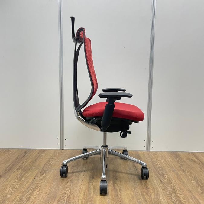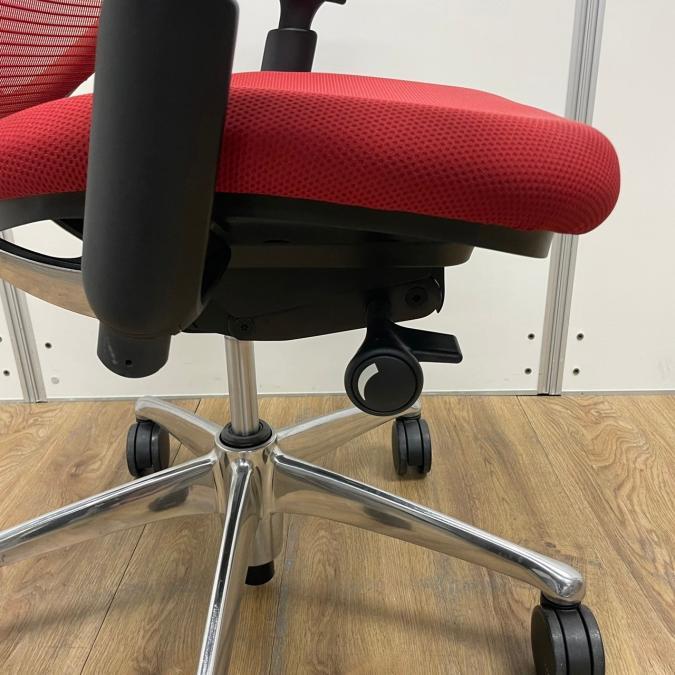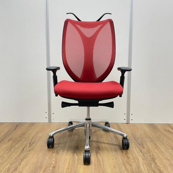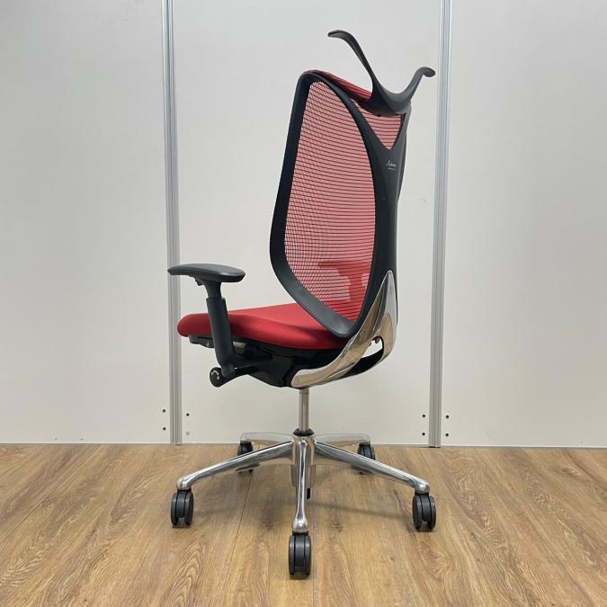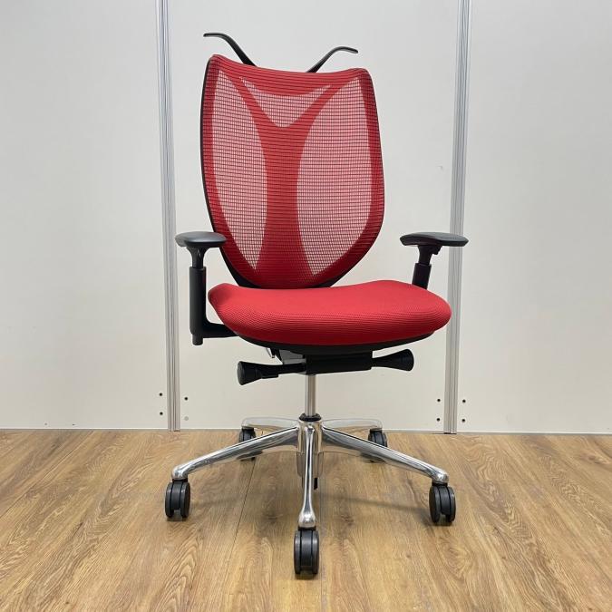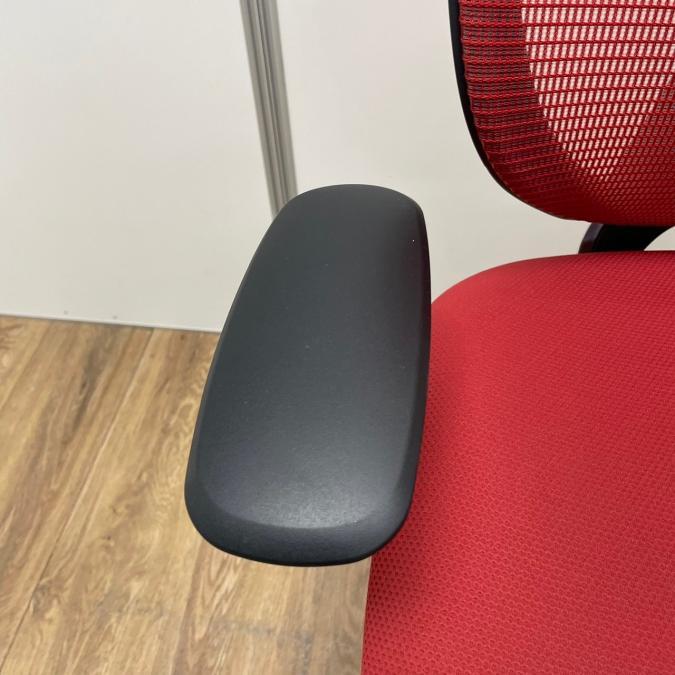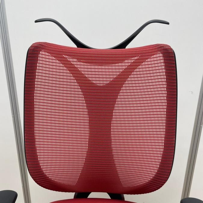 【1脚限定】オカムラ製 サブリナシリーズ レッドカラー ブラックフレーム アジャストアーム※可動肘 コートハンガー付き テレワークではすっかりお馴染み 肘付きハイバックチェア!!- 神戸・三宮店