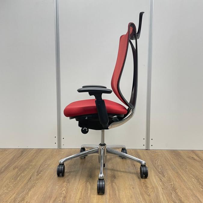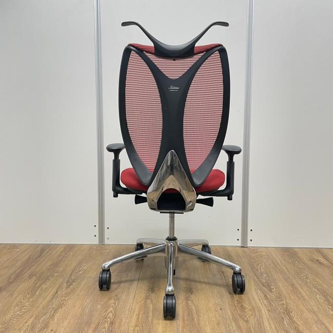 【在庫入替セール】【人間工学から生まれた最先端のワーキングチェア!】■オカムラ サブリナチェア 可動肘付 背:レッド / 座:ダークブルー ■流れるような美しいフォルム!姿勢に心地よくフィット!【K12】