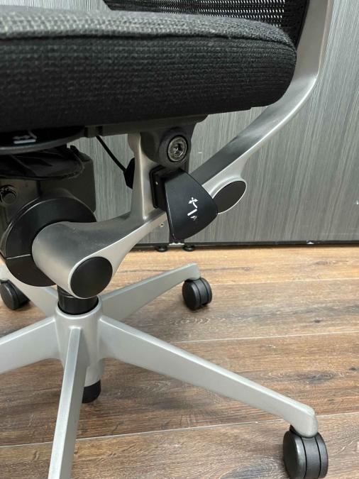 座面のすぐ右下にあるレバーの操作により、座面位置の上下調整(100mm)が可能です。