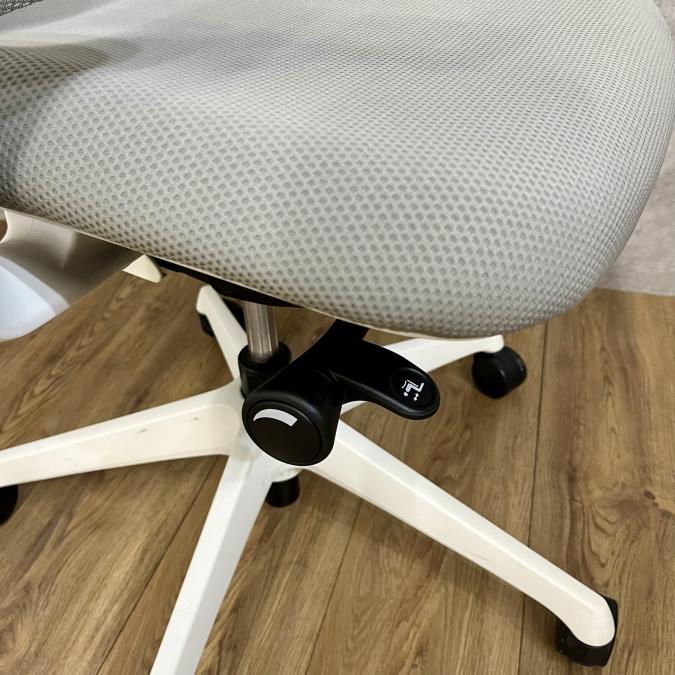 - 座面右下のダイヤル操作で、リクライニングの強弱調整が行えます。これまでのダイヤル式よりも、少ない回転数で、最弱?最強の調整が可能です。