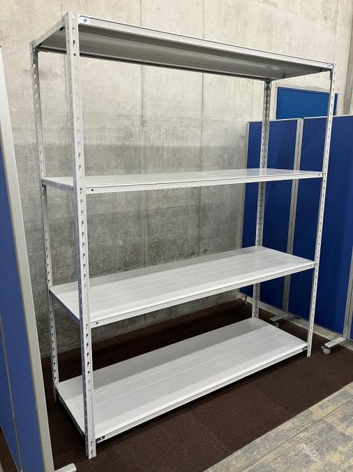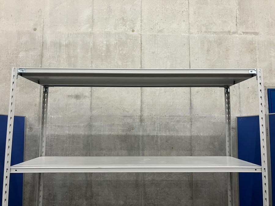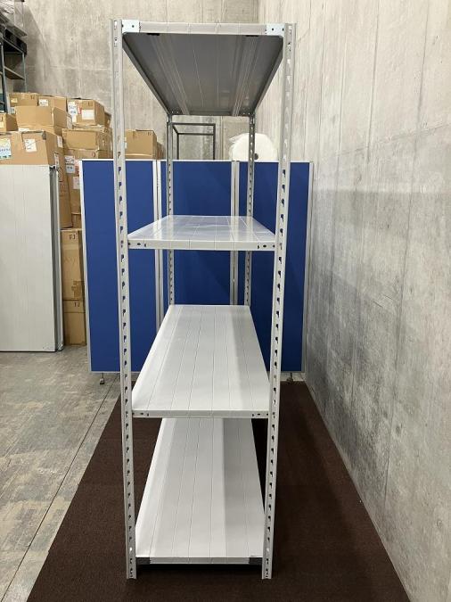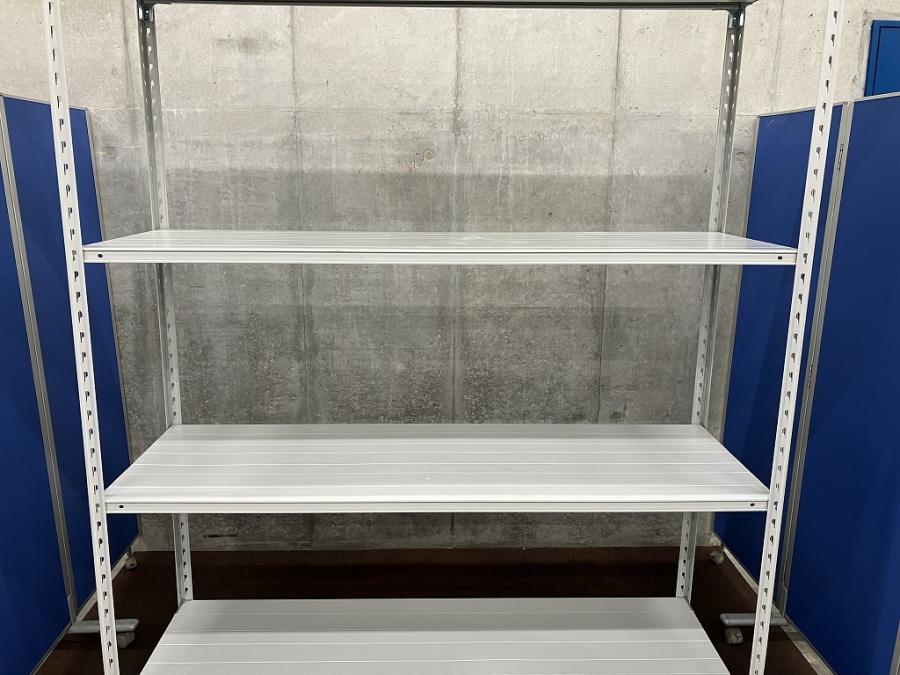 双福鋼器製の中古ラック(W1805)が2台入荷しました! ホワイトグレー色(メーカー色) 注)呼称W1800 実寸W1805 天地4段 耐荷重:段/150kg 上下六角ボルト式 ※マテハン本舗の中古商品は、千葉県柏市に在庫がございます。- マテハン本舗