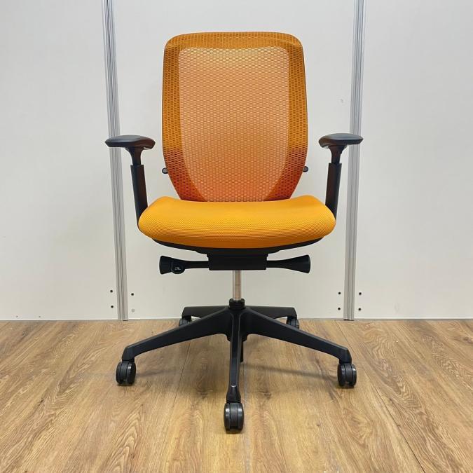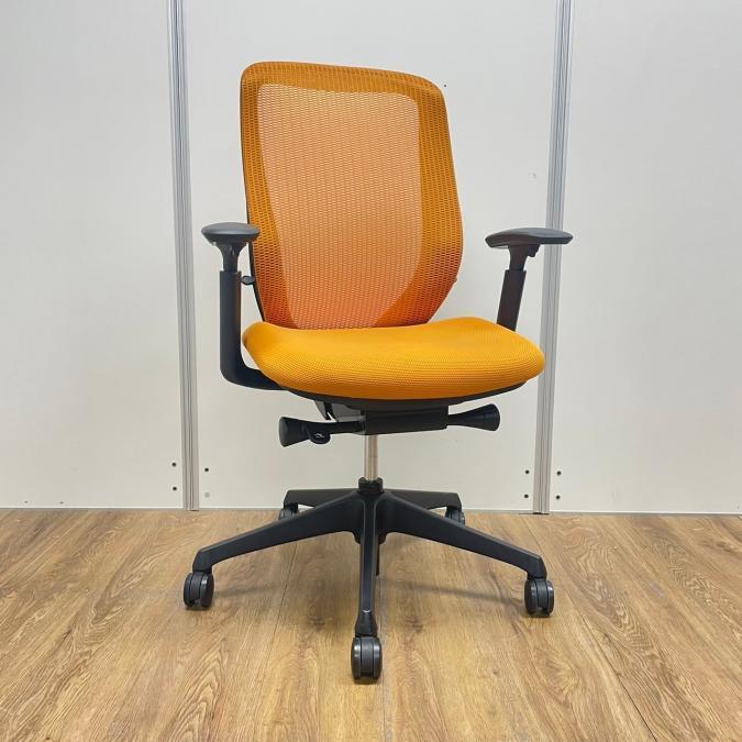 【2脚限定】オカムラ製 シルフィーシリーズ オレンジカラー ブラックフレーム アジャストアーム※可動肘 肘付きハイバックチェア!!- 神戸・三宮店