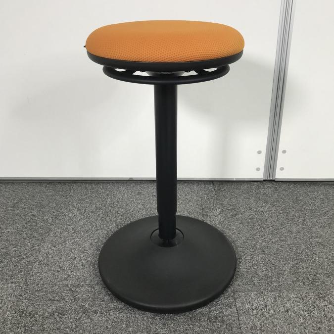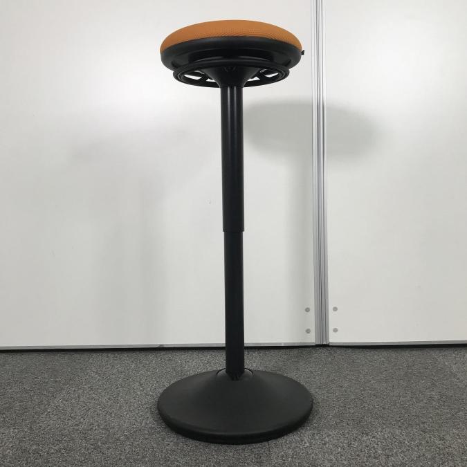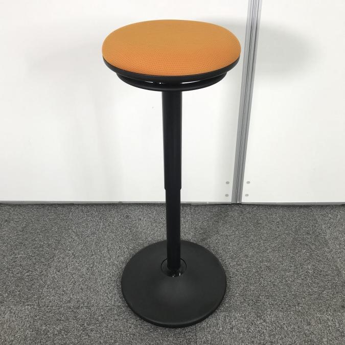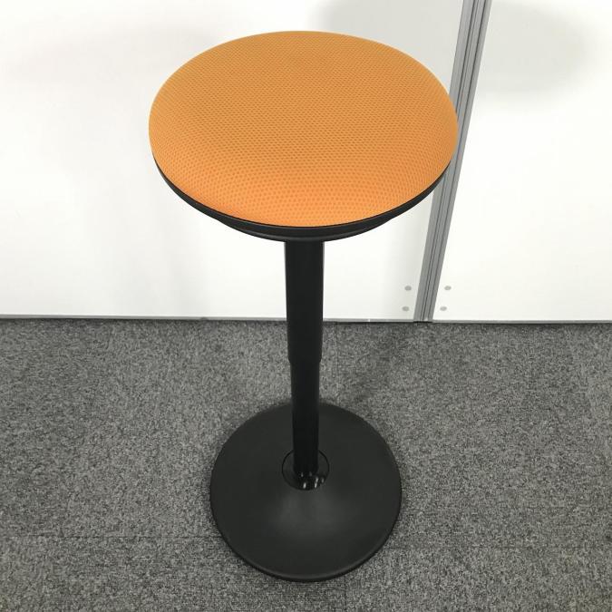 【「座る」と「立つ」のいいとこ取り!】■オカムラ(okamura) ピルエット カウンターチェア スツール ■オレンジ シェル:ブラック【高さ調節可能なパーチングスツール】- 福岡博多店