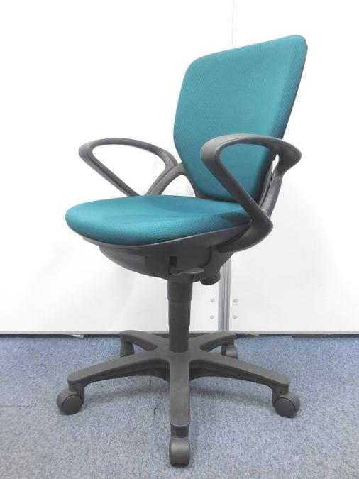 落ち着いたグリーン色で、オフィスに合うシンプルチェアです。