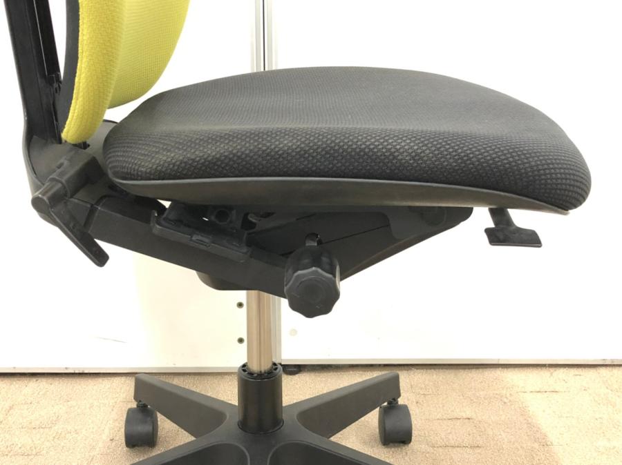例えば、座面は、イトーキ独自の"ベンディングシート"という機構により、クッション、インターシェル、空洞という三層構造になっています。 この真ん中に挟まっているインナーシェルが、着座時の姿勢に合わせて体重を分散してくれるので、どんな姿勢でも体になじみ、疲労を軽減してくれます。 さらに、座面は前後に4センチほど奥行きを調整でき、前傾姿勢で座りたい、深く腰掛けたい、膝裏を圧迫されたくないなど、個人の好みに合った快適さにカスタマイズが可能となっています。